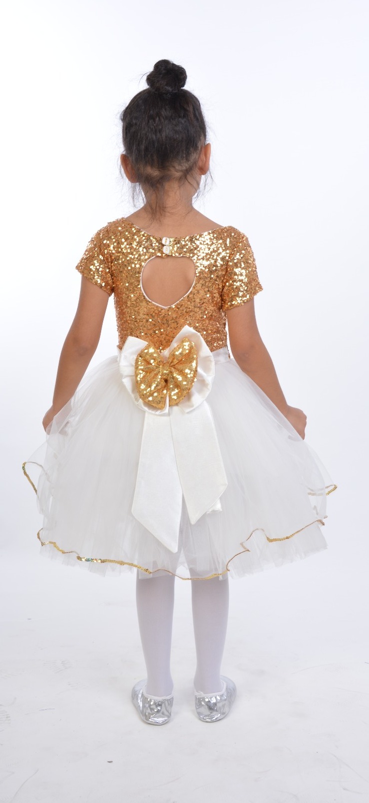 Payet Tişört (Altın) Fiyonklu Tül Etek (Beyaz) Takım